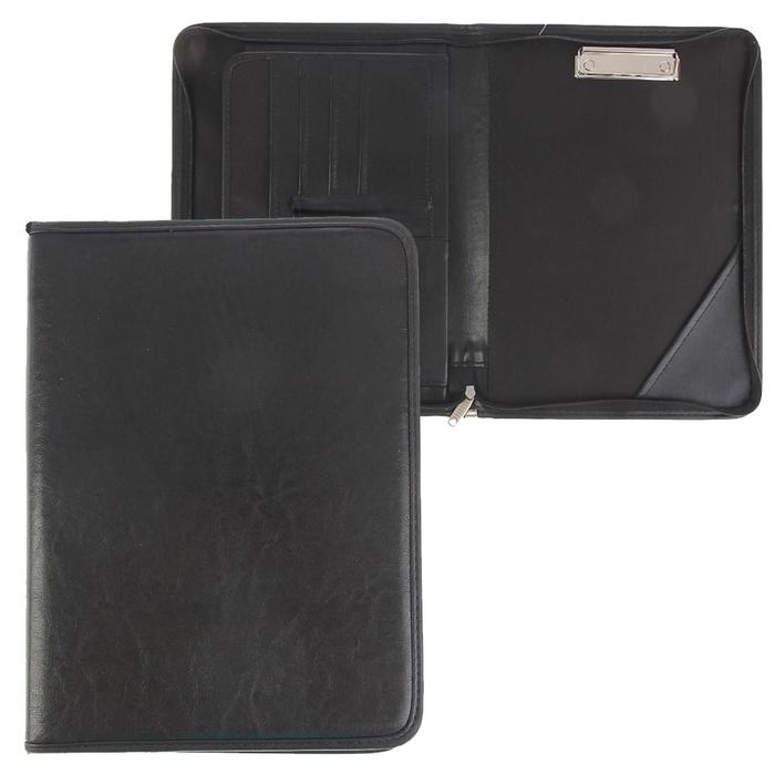 Пaпка деловая, искусственная кожа, для бумаг, 360 х 260 х 30 мм, с металлическим прижимом, 6Д07 "Люкс " чёрная