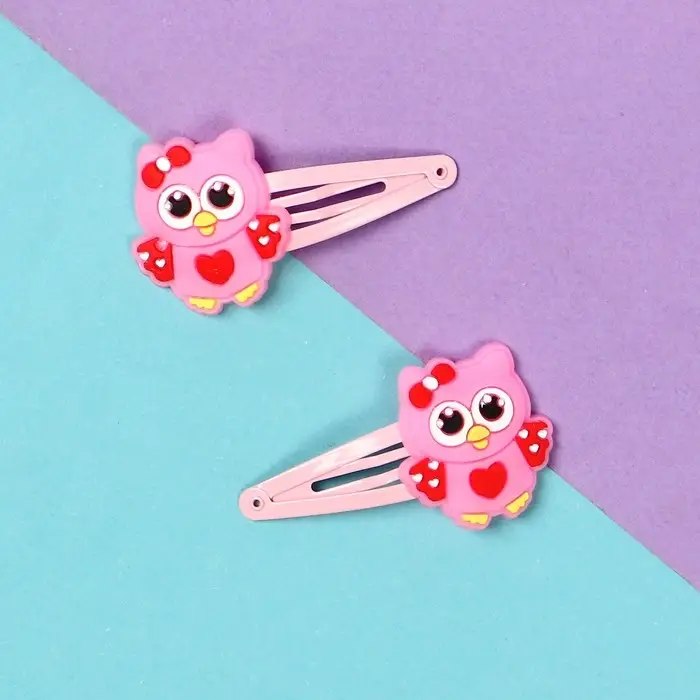 Невидимка для волос "Абель" (набор 2 шт) совушка, 5 см, розовый