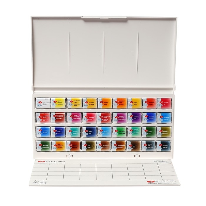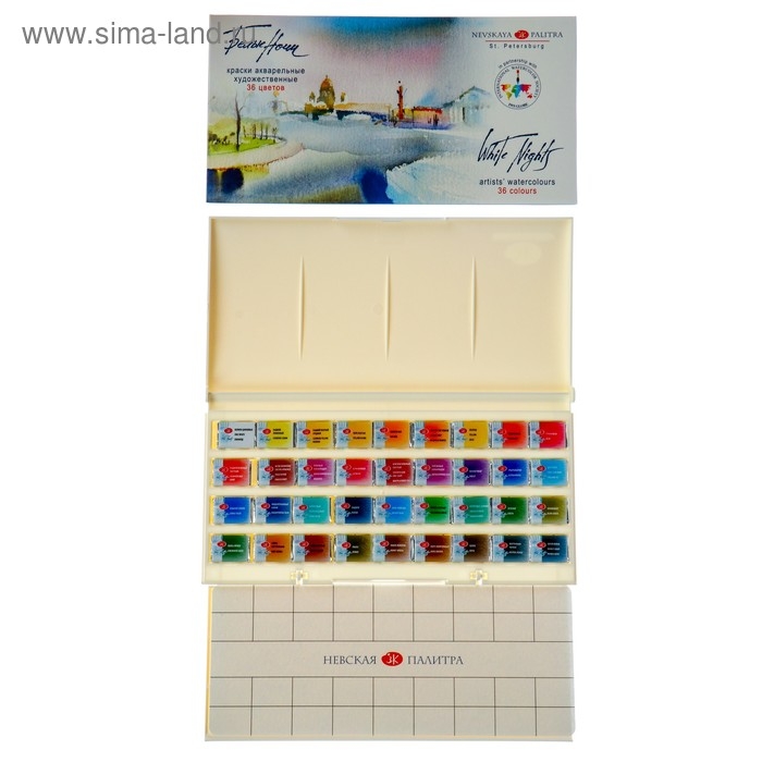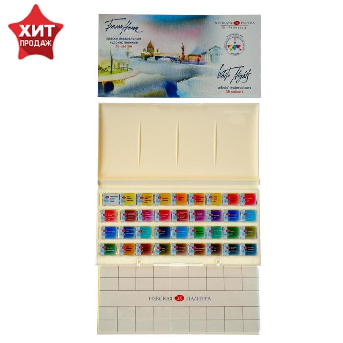 Акварель художественная в кюветах, 36 цветов х 2.5 мл, ЗХК "Белые ночи", пластиковая палитра, 1942258