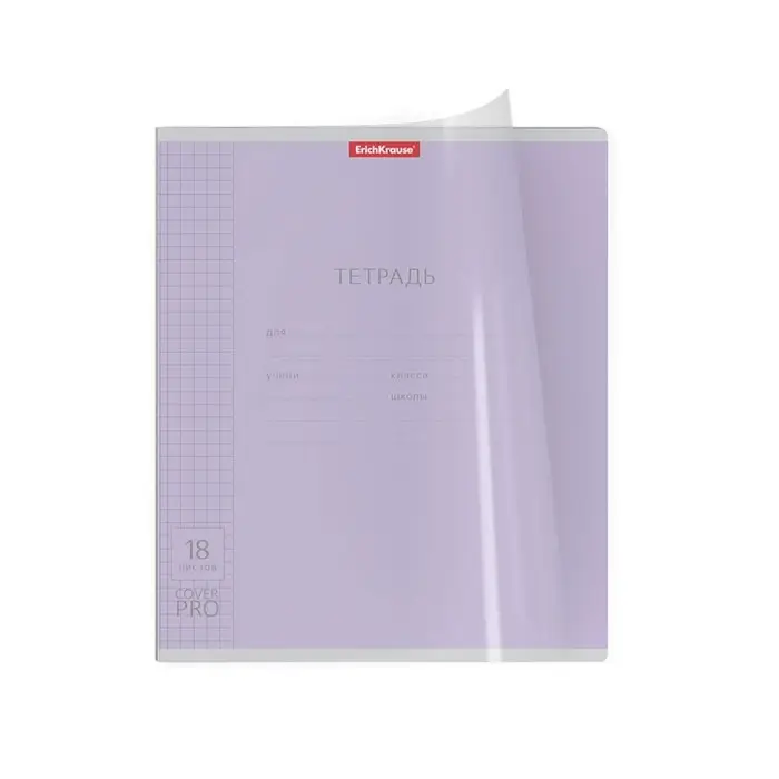 Тетрадь 18 листов в клетку, ErichKrause "Классика CoverPrо", пластиковая обложка, мелованный картон, блок офсет 100% белизна, МИКС, цена за 1 штуку