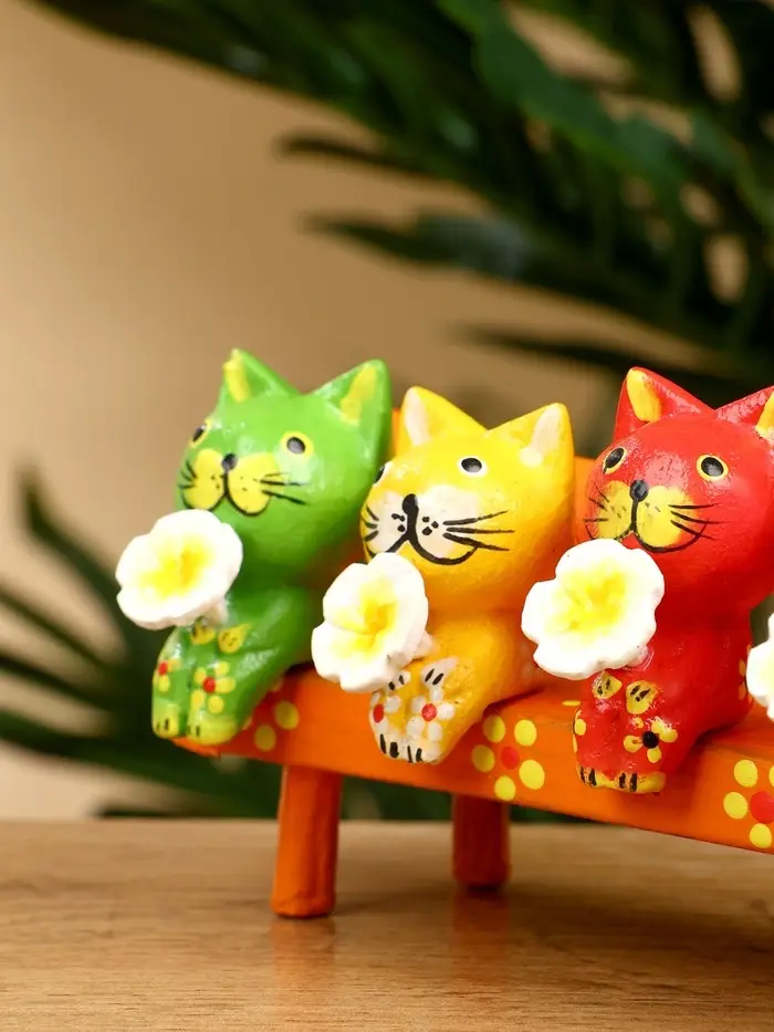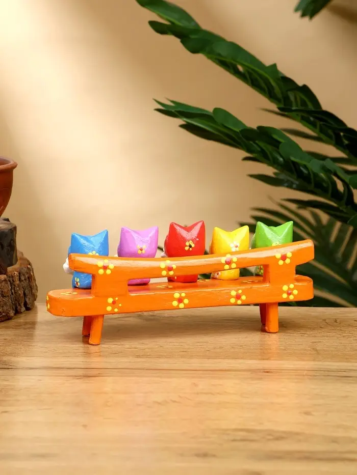 Сувенир "Котята на скамейке" дерево 19х8х6 см, цв. оранжевый