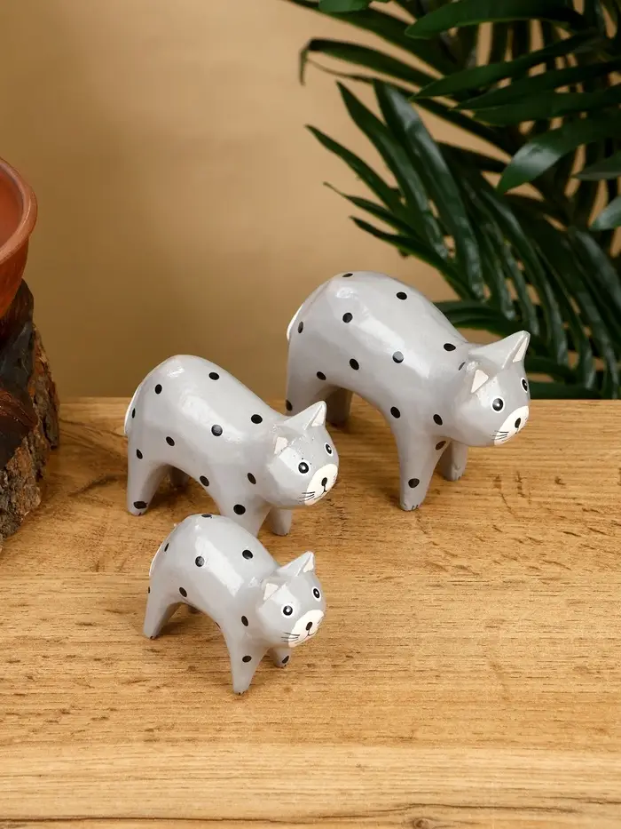 Набор сувенирный «Кошки», h=9 см, h=8 см, h=6.5 см, дерево, серый