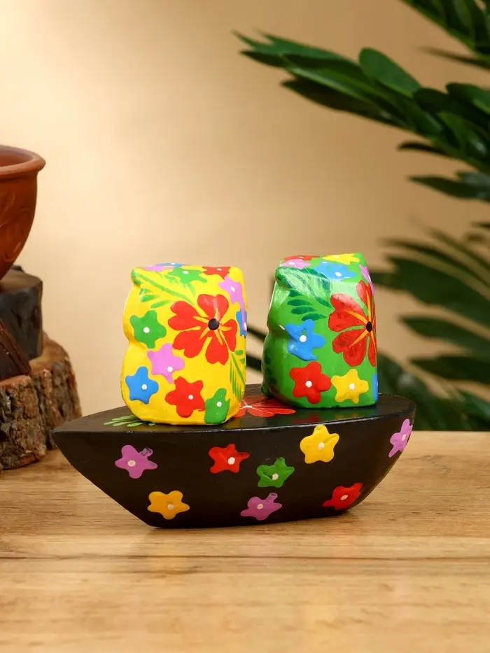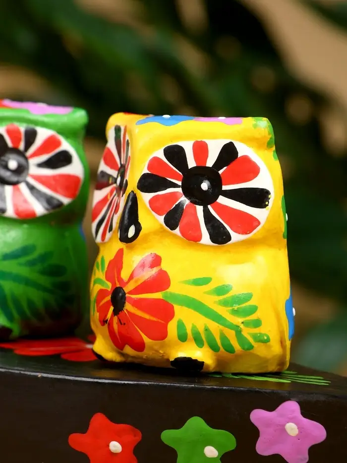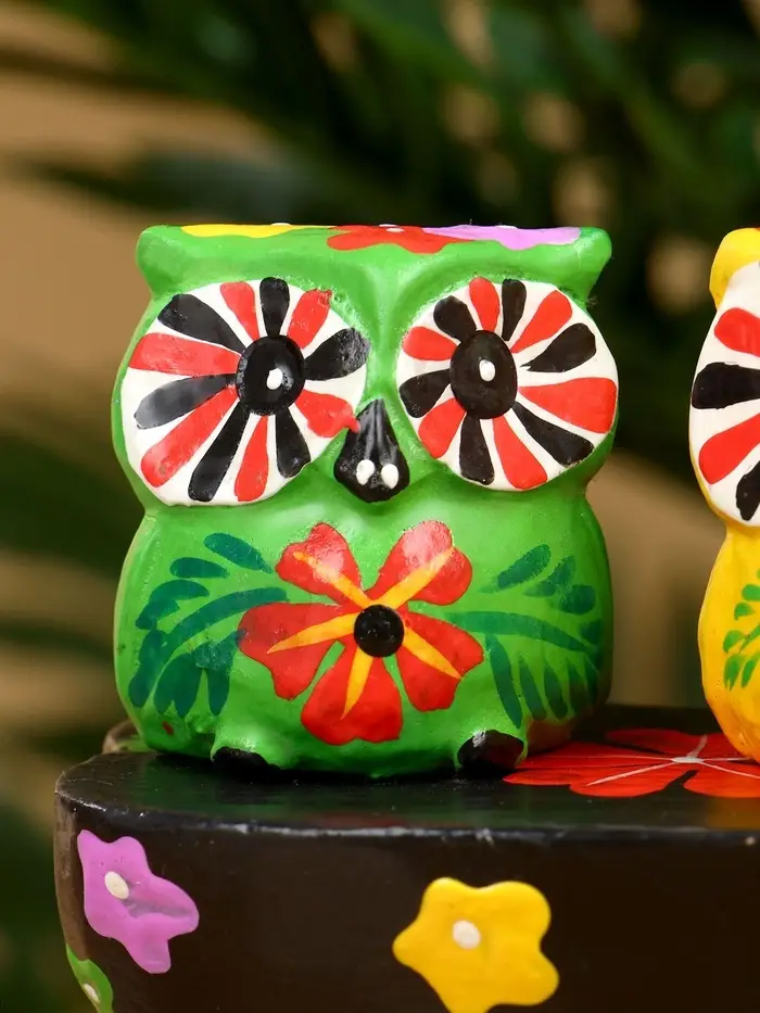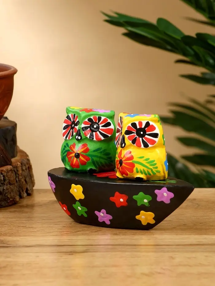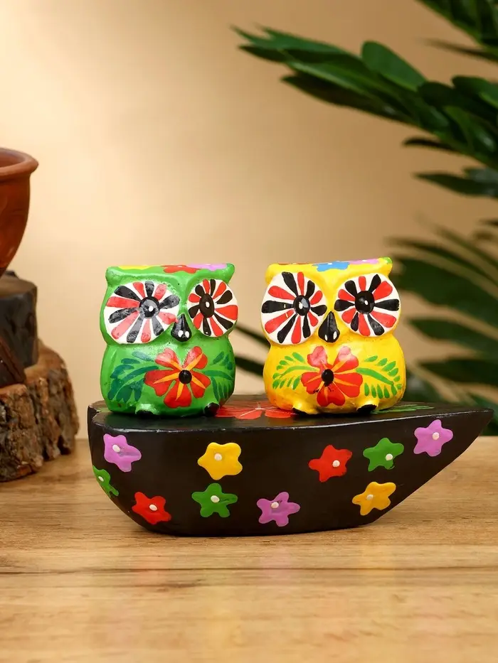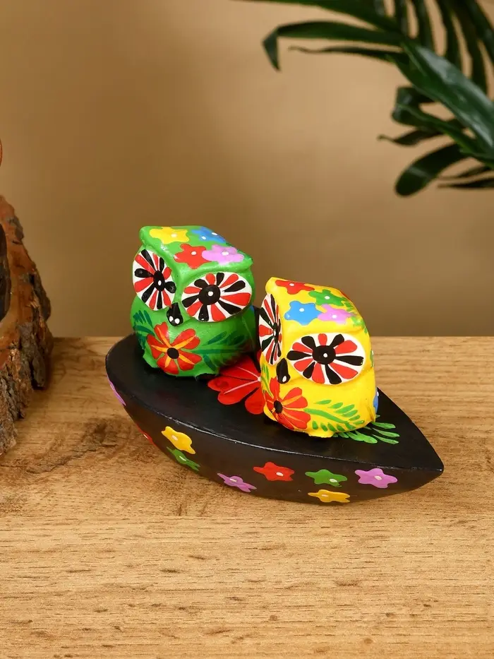 Сувенир "Пара совят" дерево 14х7х9 см, цв. жёлтый/зелёный