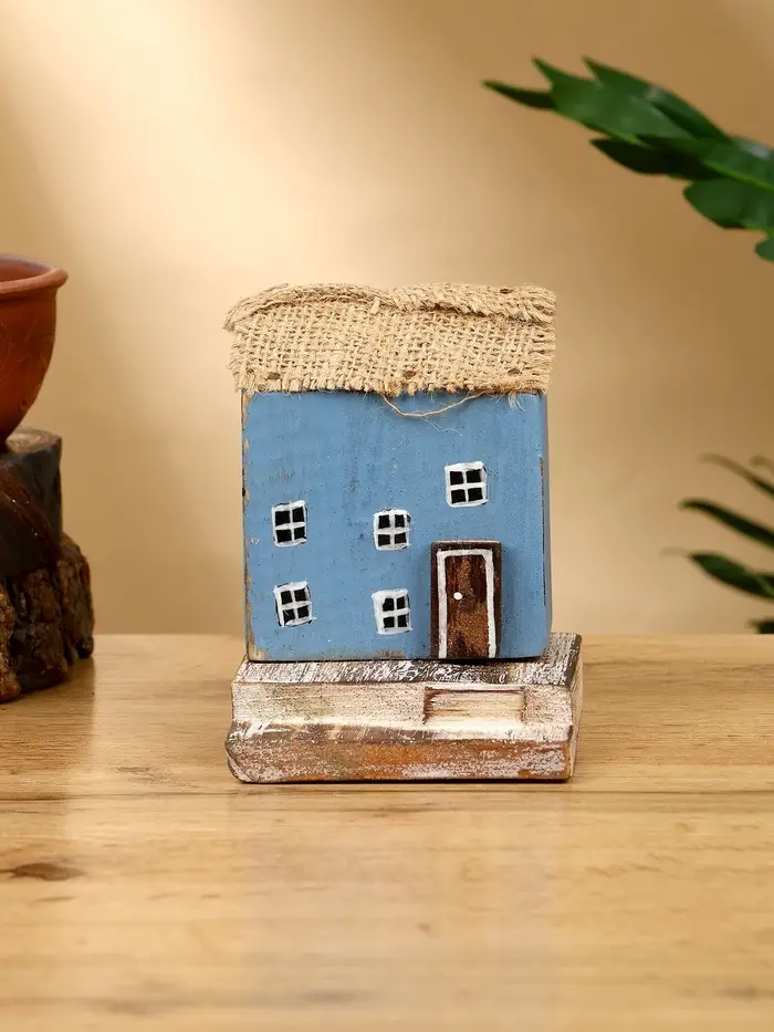 Сувенир "Дом" дерево Албезия 9х11х11 см, цв. синий