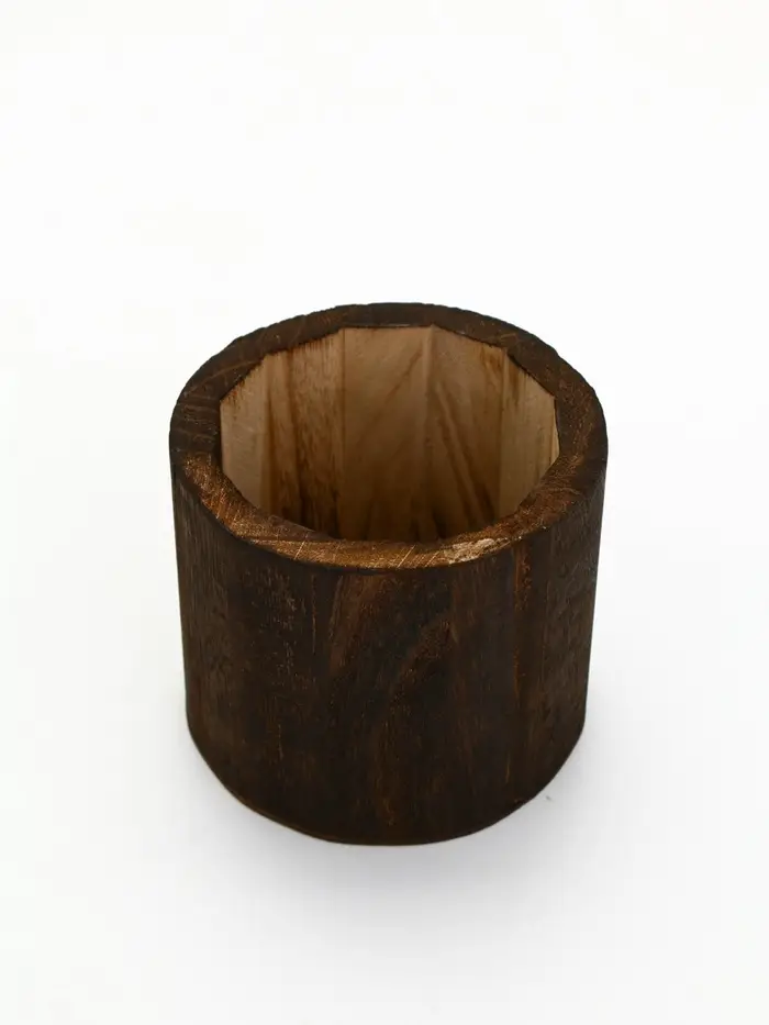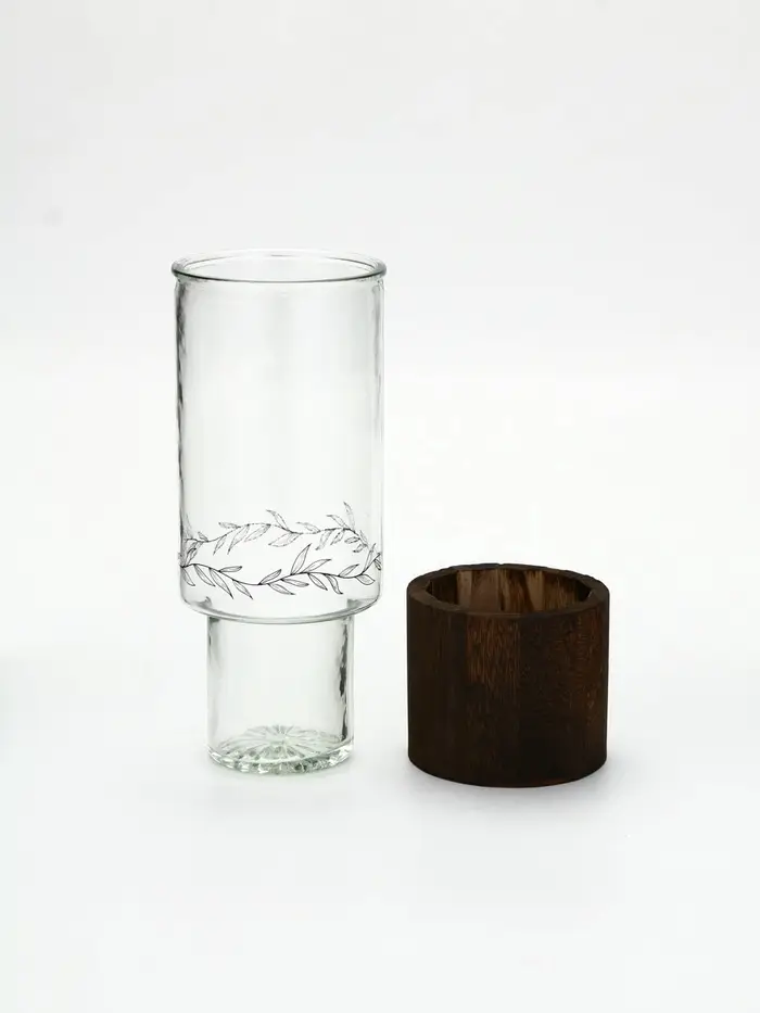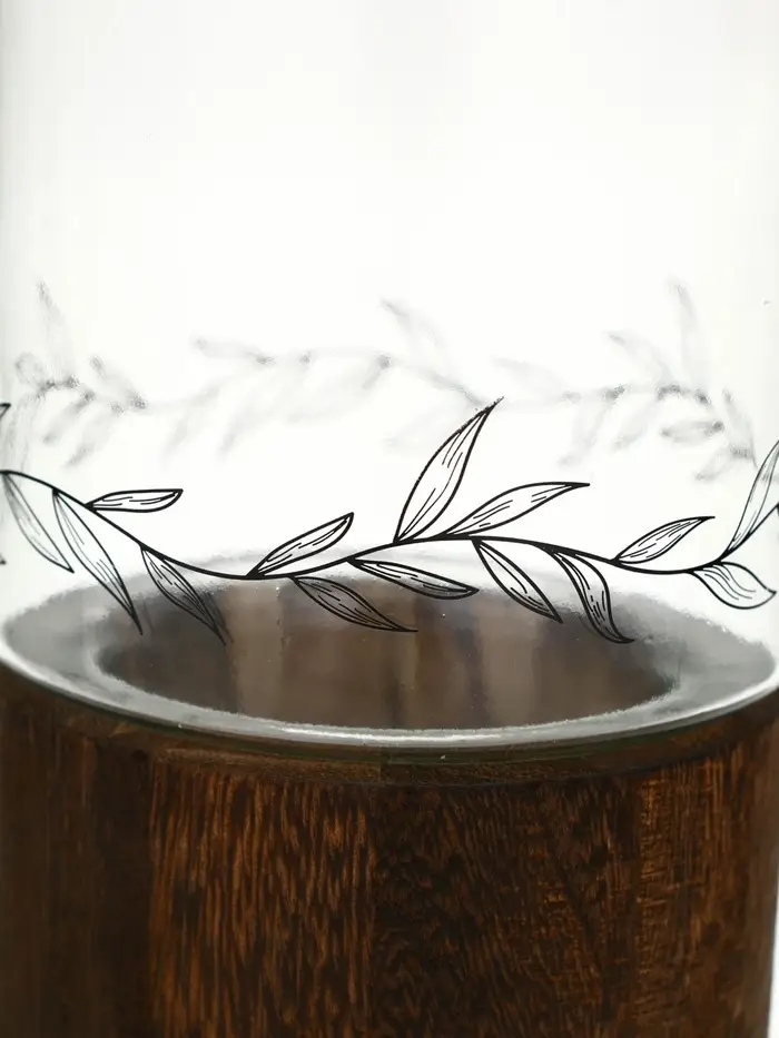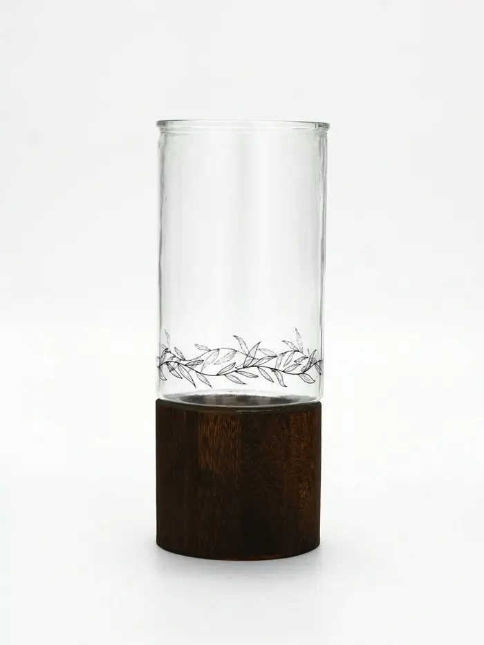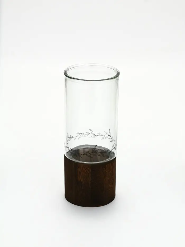 Стеклянная ваза с деревянной подставкой, 10х25,5х10 см