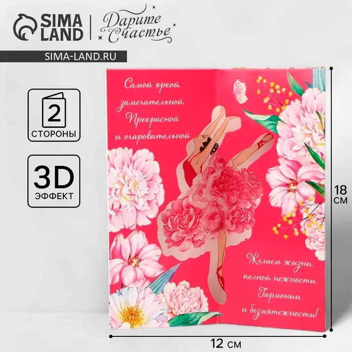 Объёмная открытка «Самой прекрасной», цветы, 12 х 18 см