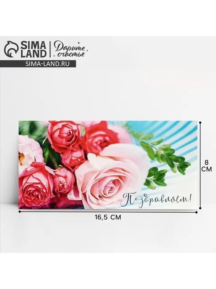 Конверт для денег «Поздравляем!», розовый букет, 16.5 × 8 см
