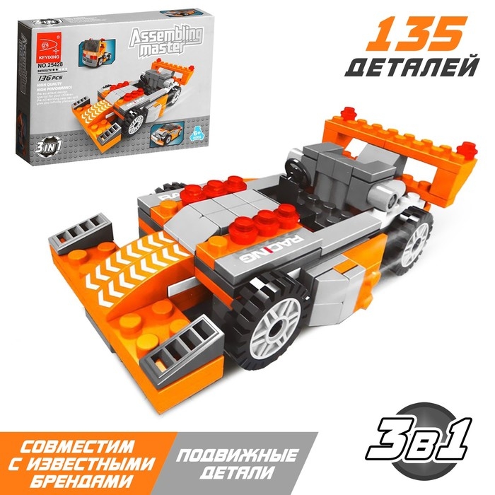 Конструктор «Спорткар», 3 в 1, 135 деталей