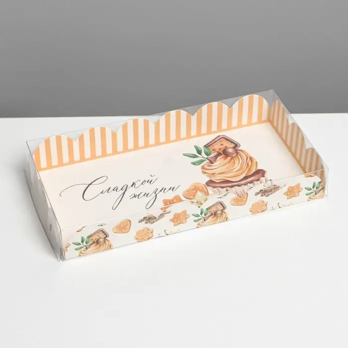 Коробка для печенья, кондитерская упаковка с пластиковой крышкой, «Сладкой жизни», 10.5 х 21 х 3 см