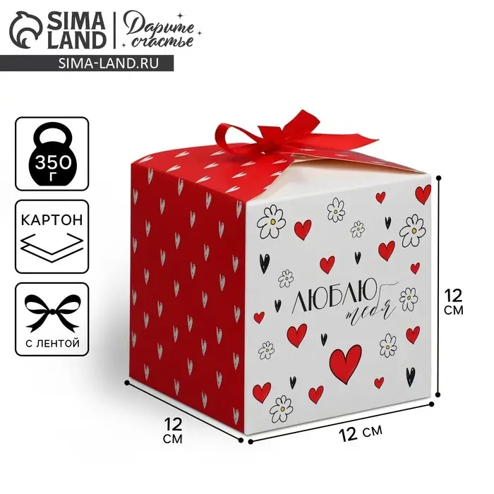 Коробка подарочная складная, упаковка, «Люблю тебя», 12 х 12 х 12 см