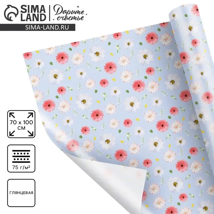 Бумага упаковочная глянцевая «Ромашки», 70 х 100 см
