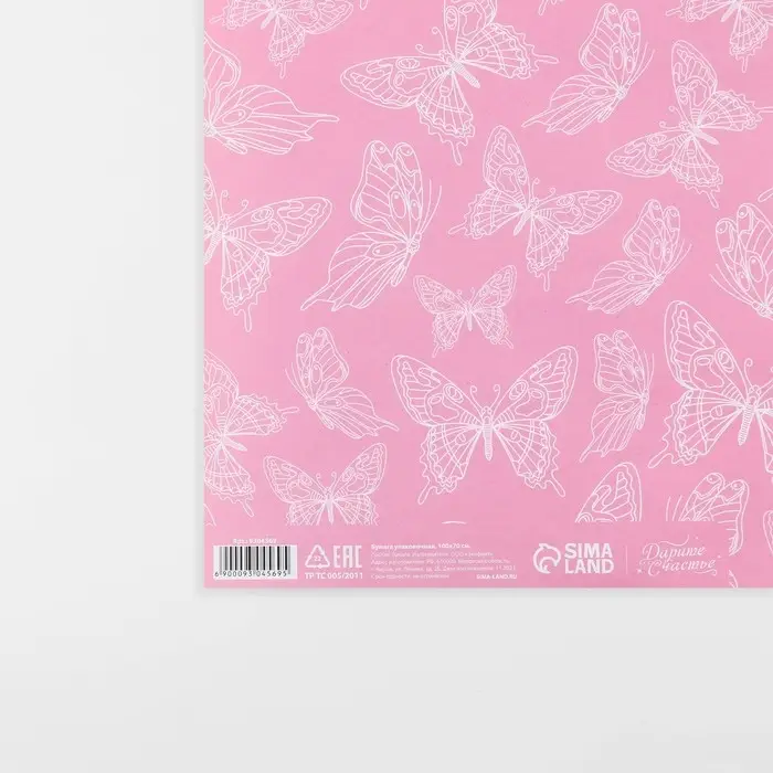 Бумага упаковочная глянцевая «Бабочки», 70 х 100 см