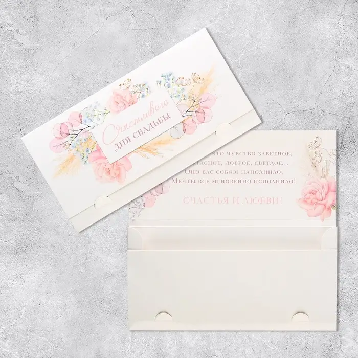 Конверт для денег «Счастливого дня свадьбы», 19 х 0.7 х 9.5 см