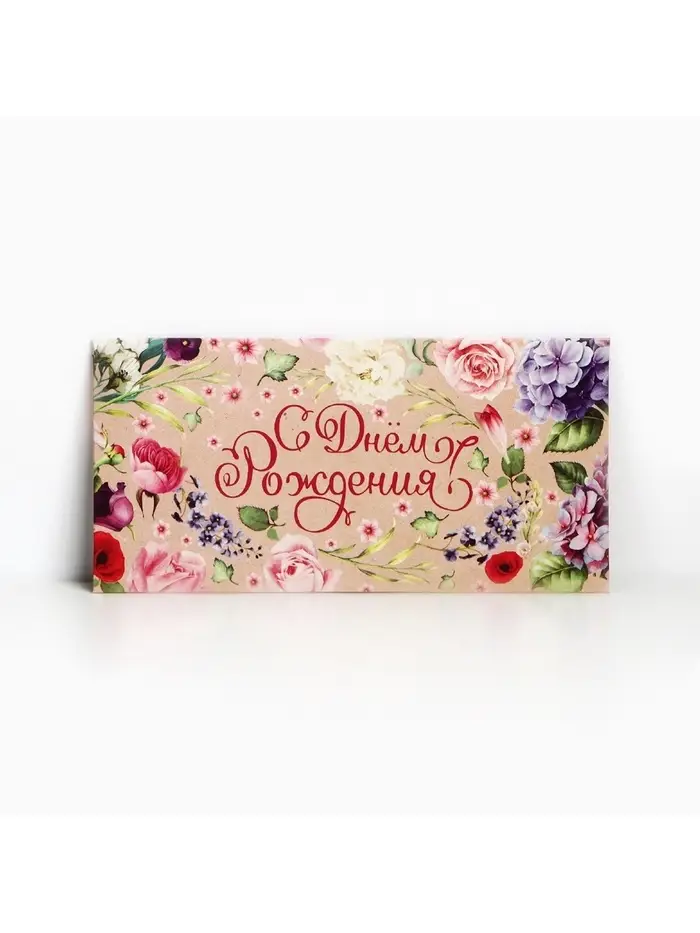 Конверт для денег "Поздравляю", цветы на крафте, 16,5 х 8 см