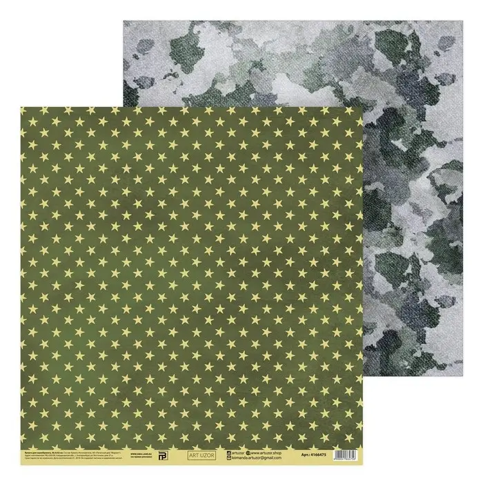 Бумага для скрапбукинга «Армейские звёзды», 30,5 х 32 см, 190 г/м²