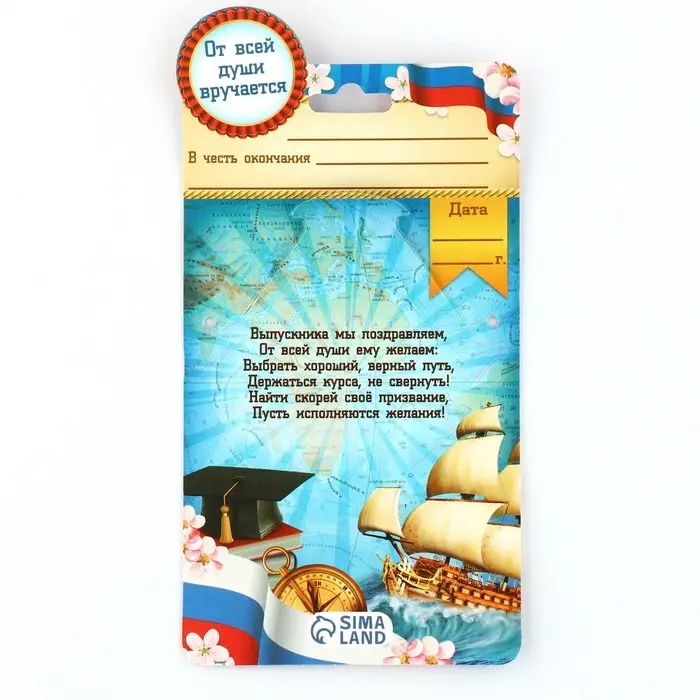 Выпускной - это особое событие для каждого ребёнка. Сувенир изготовлен из лёгкого пластика и декорирован яркой текстильной лентой шириной 1,8 см. Изделие дополнено булавкой на оборотной стороне, так что его сразу можно надеть на счастливого получателя. Каждый значок на булавке с лентой прикреплен к яркой, нарядной подложке - открытке, ребенку будет вдвойне приятно получить такой презент