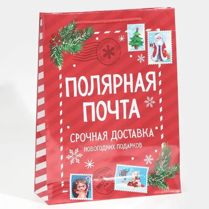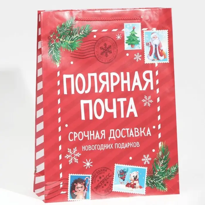 Пакет подарочный новогодний ламинированный «Полярная почта», L 28 х 38 х 9 см