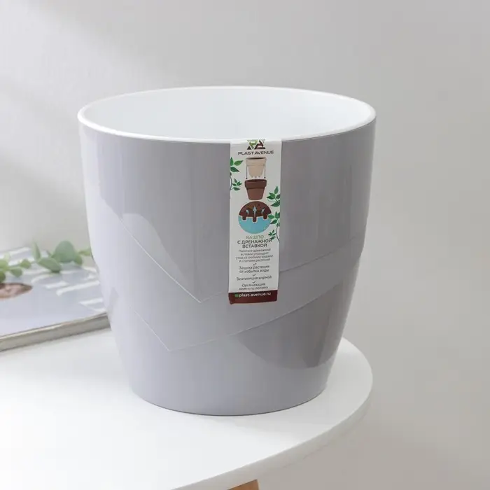 Кашпо для цветов со вставкой «Грация», 4,5 л, цвет серый