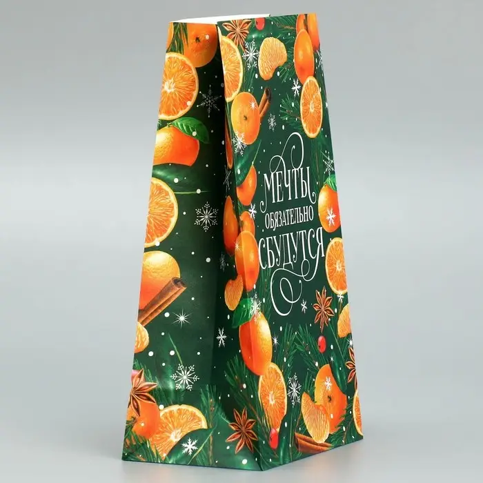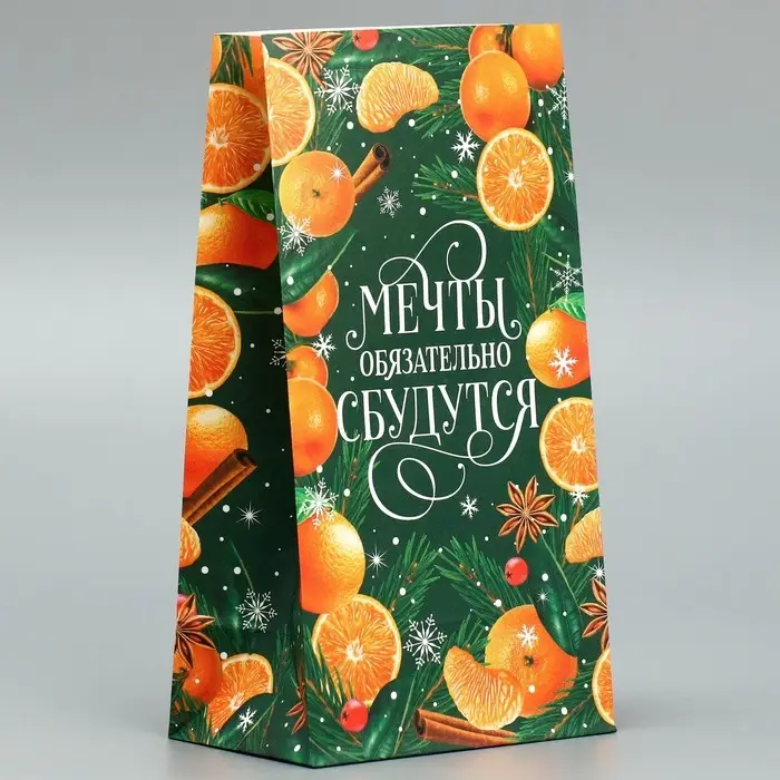 Пакет без ручек «Мечты обязательно сбудутся», мандарины, 10 х 19.5 х 7 см, Новый год
