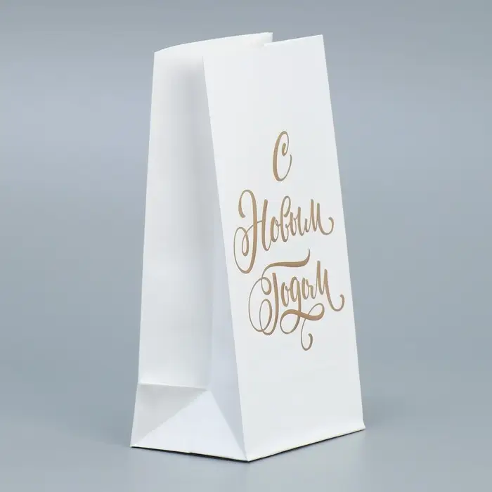 Пакет подарочный без ручек «С Новым Годом», белый, с тиснением, 10×19.5×7 см