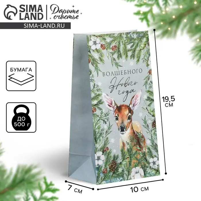 Пакет подарочный без ручек «Волшебного Нового года», 10×19.5×7 см