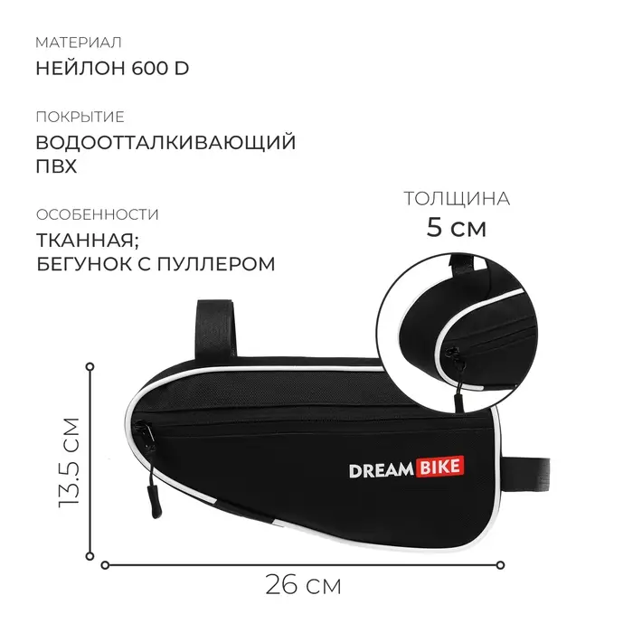 Велосумка Dream Bike под раму, 26х13.5х5, цвет чёрный/белый