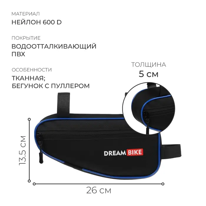 Велосумка Dream Bike под раму, 26х13.5х5, цвет чёрный/синий