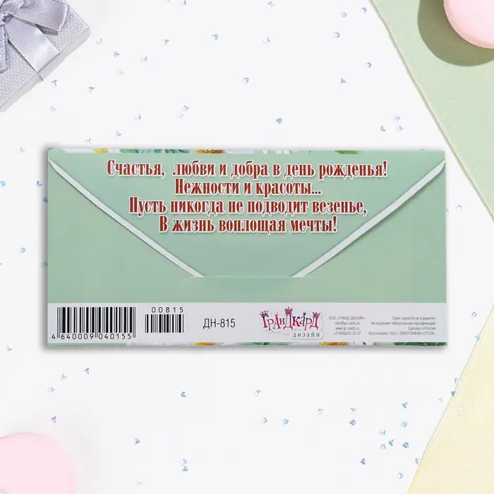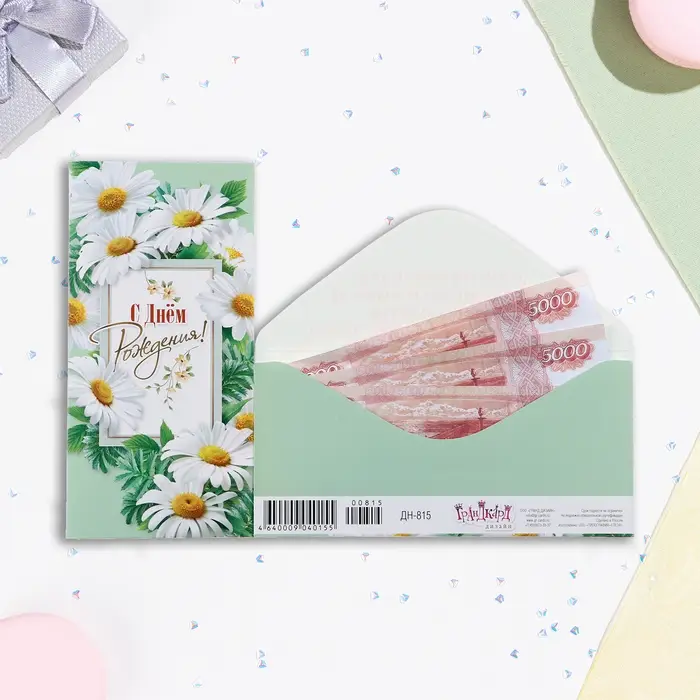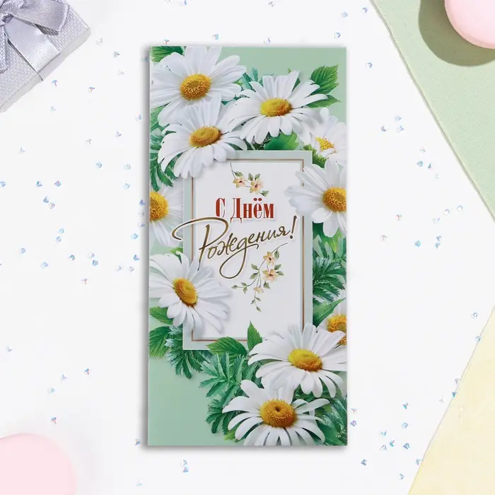 Конверт для денег "С Днём Рождения!" ромашки, 16,5 х 8 см