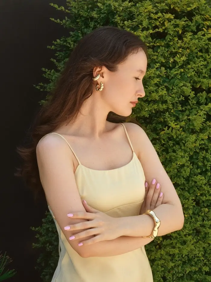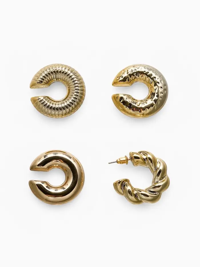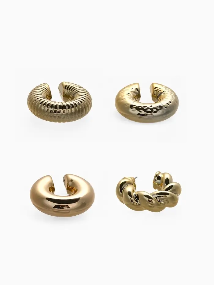 Набор серьга и каффы "Бублики" набор 3 шт, цвет золото