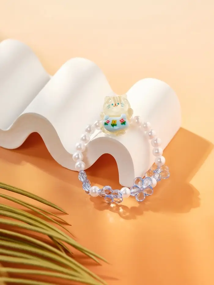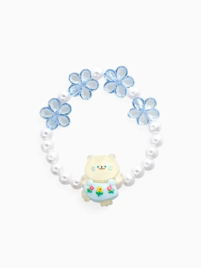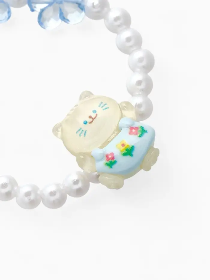 Браслет детский «Выбражулька» котик, d=6 см. цветы, жемчуг, бело-голубой