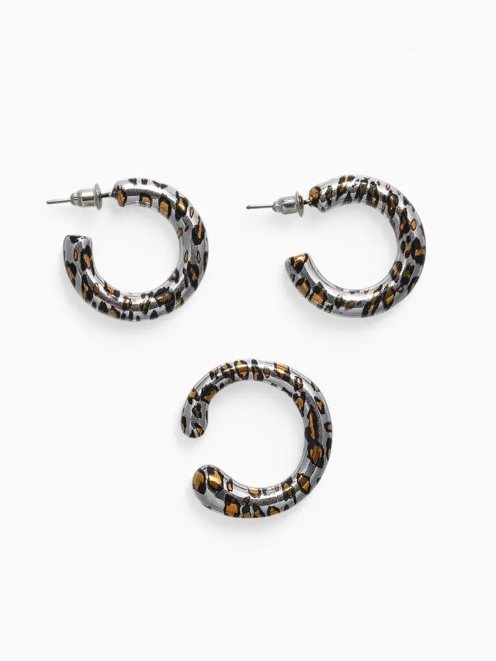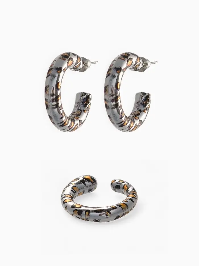 Набор серьги и каффы "Леопард", цвет серебро