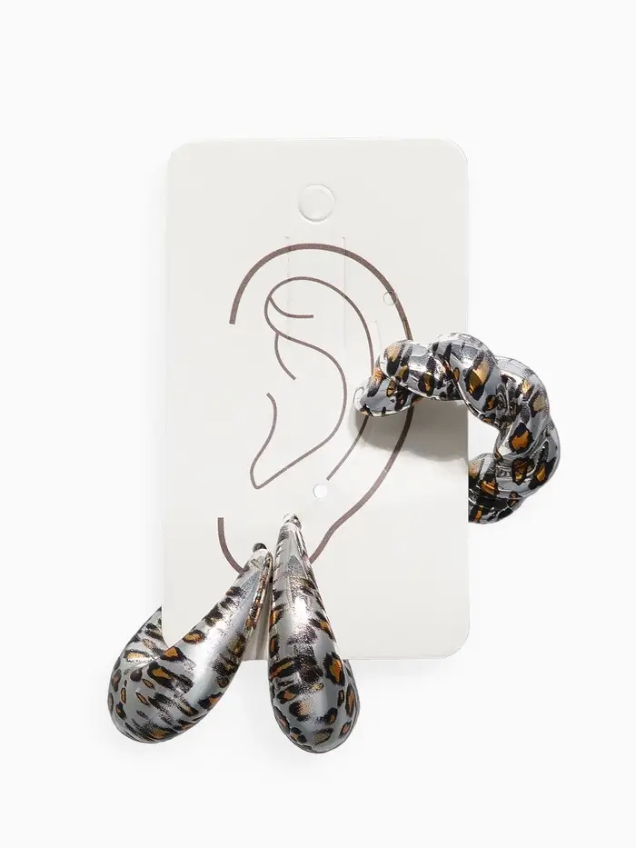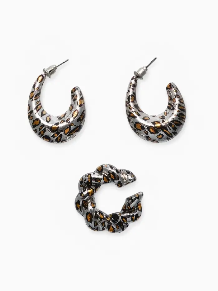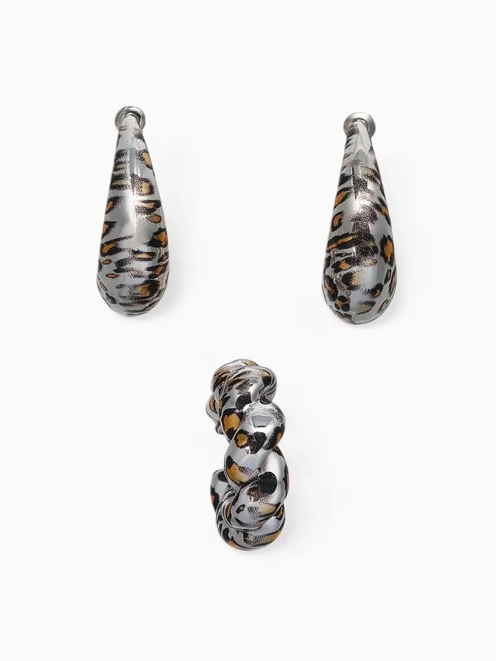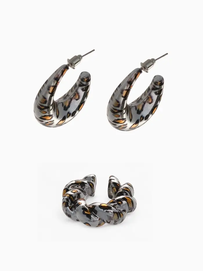 Набор серьги и каффы "Леопард" жгутик, цвет серебро
