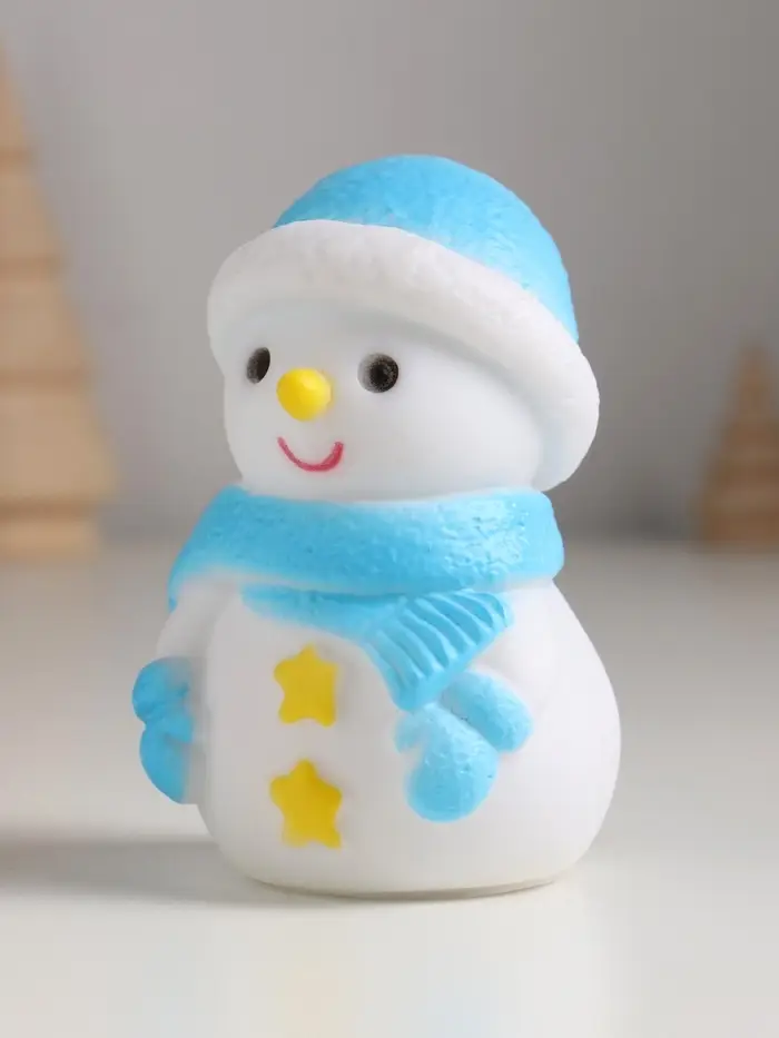 Фигурка светящаяся RISALUX «Снеговик в голубом» LED, 3хAG10 7,5х5,5х10 см