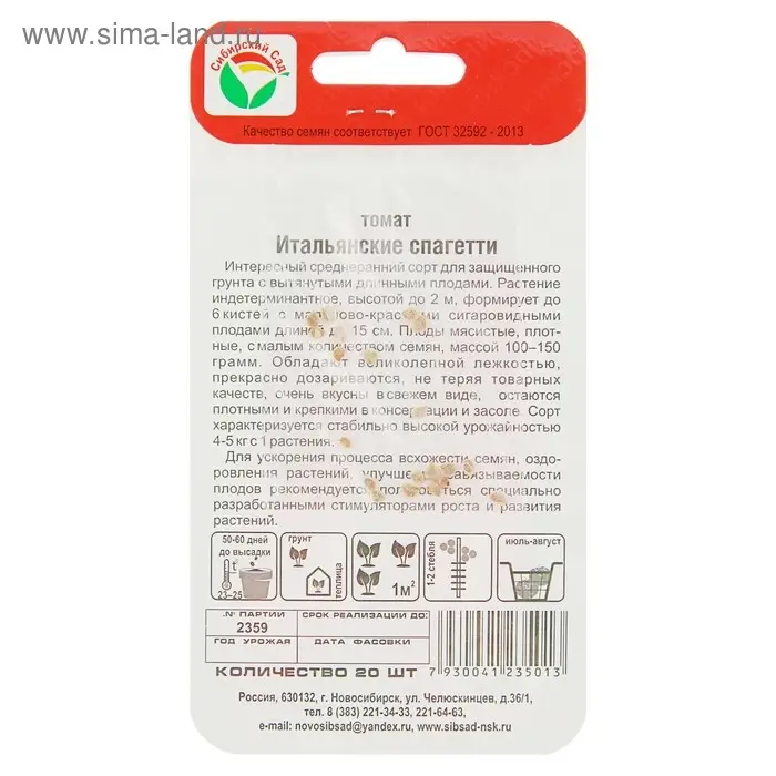 Семена Томат "Итальянские спагетти", среднеранний, индетерминантный 20 шт