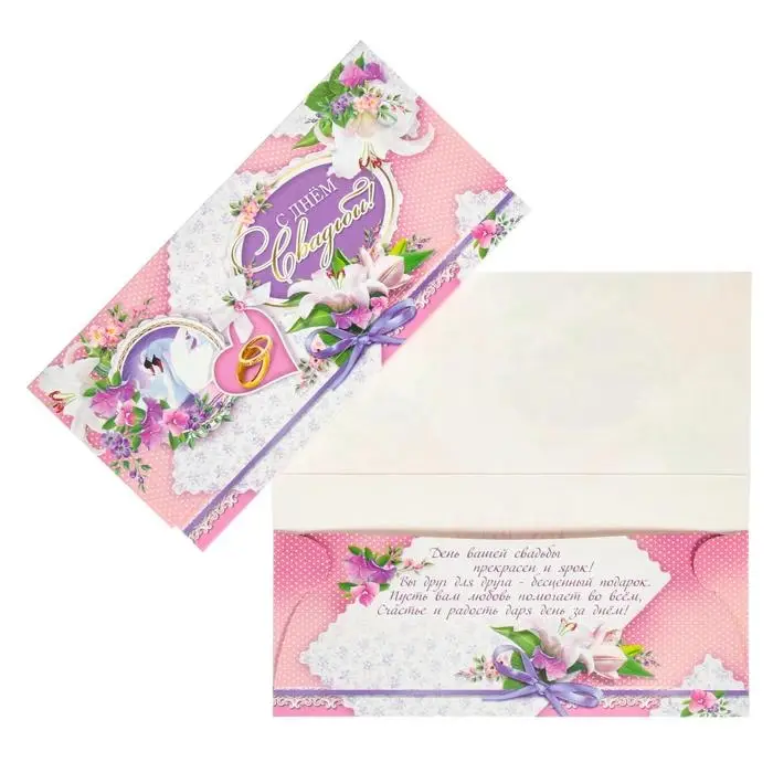 Конверт для денег "С Днем Свадьбы!" лебеди, лилии