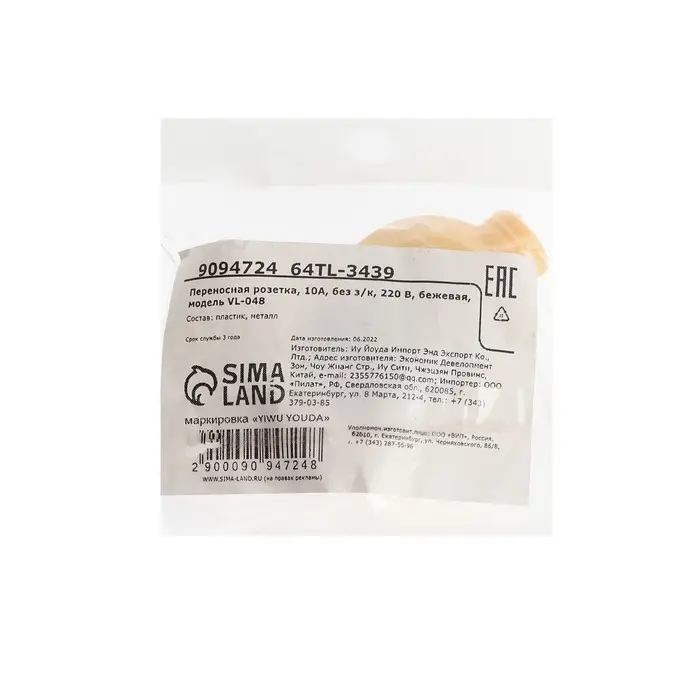 Переносная розетка, 10А, без з/к, 220 В, бежевая