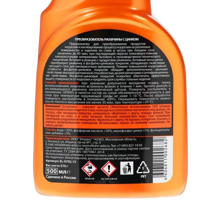 Преобразователь ржавчины Элтранс с цинком, 500 мл, триггер EL-0702.13