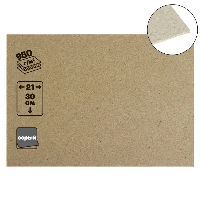 Картон переплётный (обложечный) 1.5 мм, 21 х 30 см, 950 г/м2, серый
