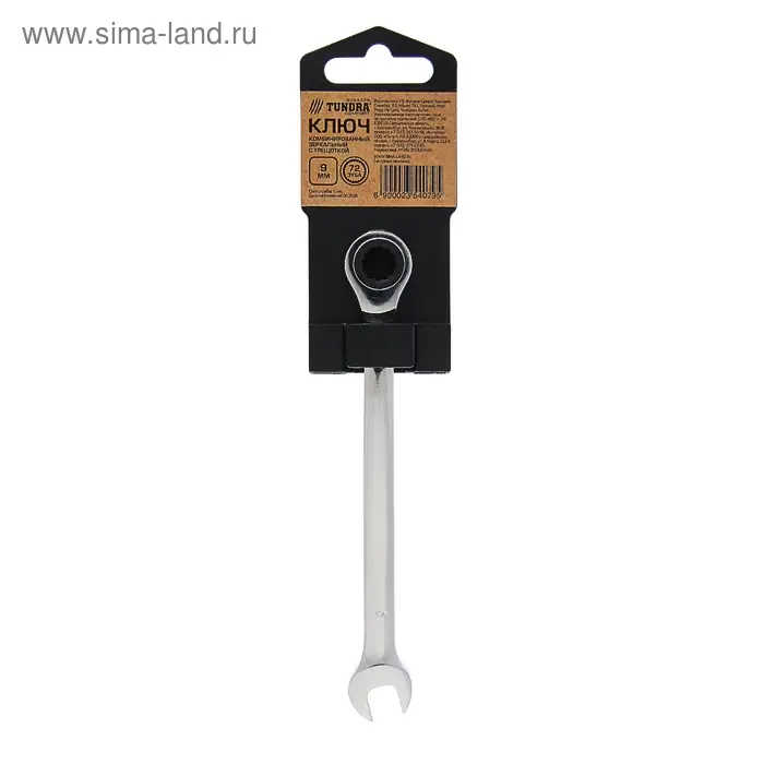Ключ комбинированный трещоточный ТУНДРА, CrV, полированный, 72 зуба, 9 мм