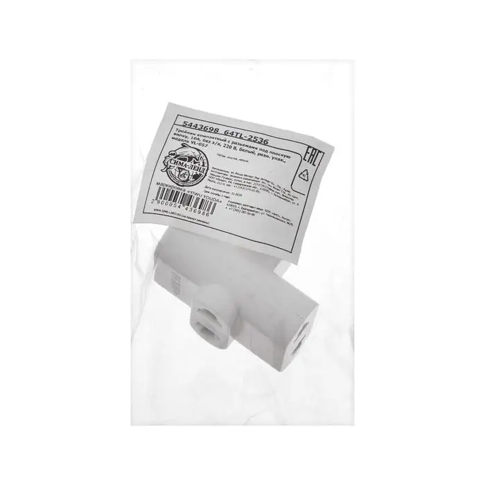 Тройник компактный с разьемами под плоскую вилку, 10А, без з/к, 220 В, белый, розн. упак.