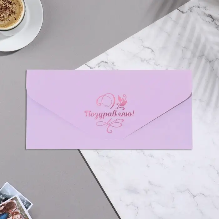 Конверт для денег «Поздравляю!» софт тач, тиснение, сиреневый цвет, 9×19 см