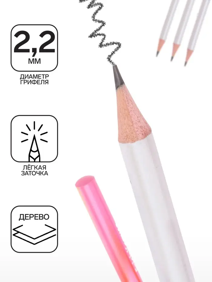 Круглый чернографитный карандаш из отборной древесины, твердость НВ. Три дизайна корпуса. Специальная пропитка древесины и сплошная проклейка грифеля обеспечивает высокую ударопрочность. Мягкая древесина и идеальная центровка грифеля гарантируют легкую заточку с экономным расходом карандаша. Грифель диаметром 2.2 мм не царапает бумагу и не крошится. Длина 175 мм.