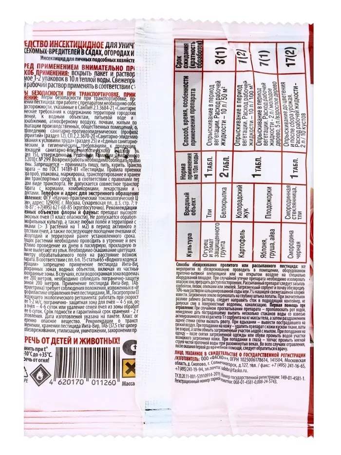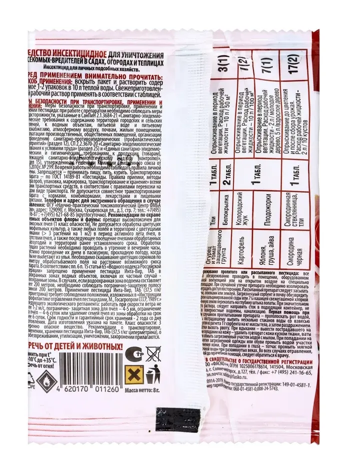 Инсектицид "Инта-Вир" от комплекса вредителей, таблетка, 8 г