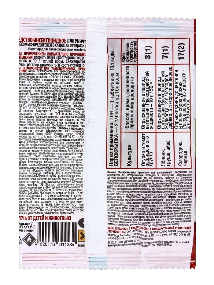Инсектицид "Инта- Вир" от тли и белокрылки, таблетка, 8 г