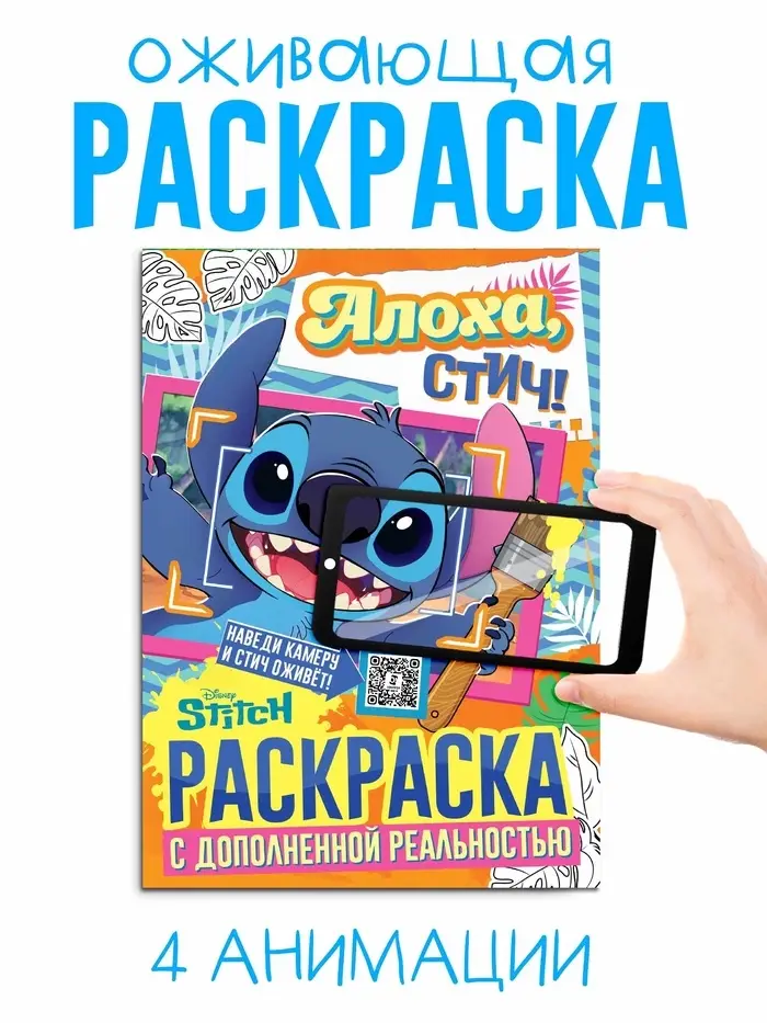 Раскраска с дополненной реальностью "Алоха, Стич!", А4, 16 стр., Стич