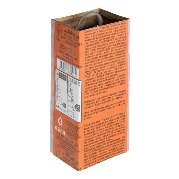 Лампа накаливания КЭЛЗ, ДС, Е14, 40 Вт, 230 В