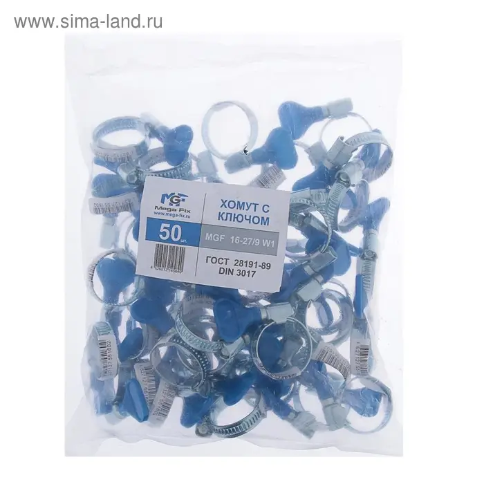 Хомут червячный с ключом MGF, диаметр 16-27 мм, оцинкованный