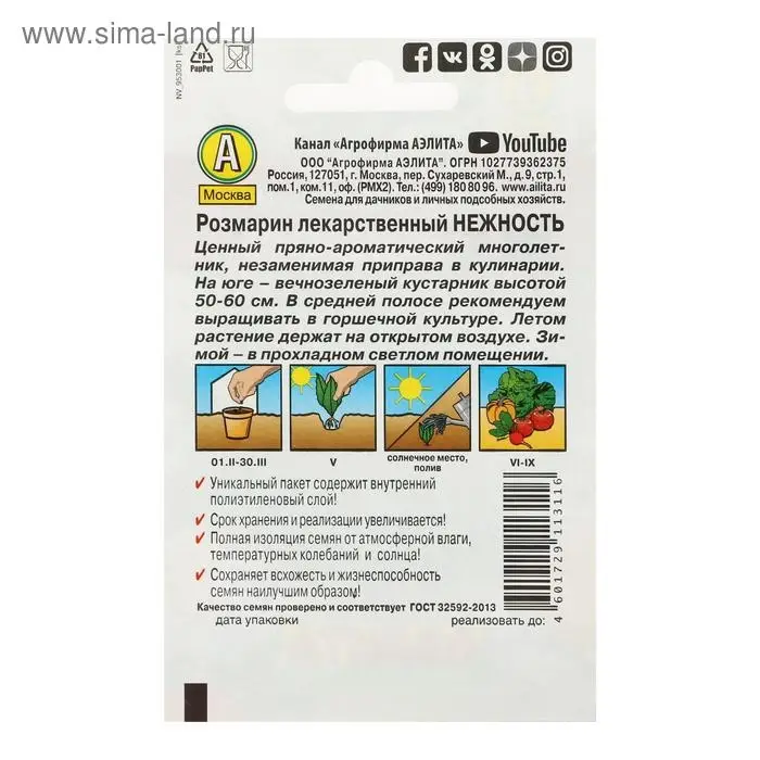 Семена Розмарин Нежность Ц/П 20шт