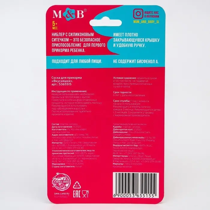 Изделие для прикорма (ниблер) пригодится в период, когда ребёнок переходит с кашки и молока на твёрдую пищу. Приспособление разовьёт у крохи жевательные навыки. Также предмет будет безопасно массировать дёсны во время прорезывания зубов.