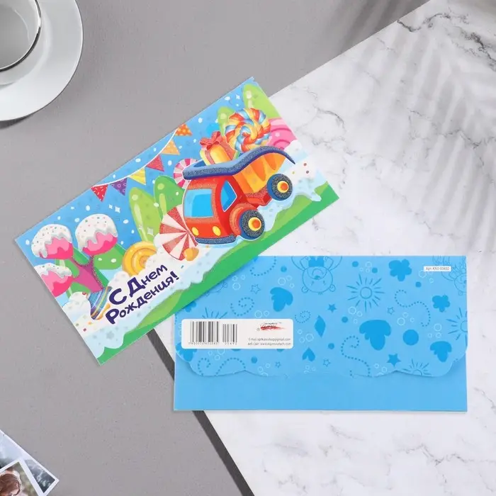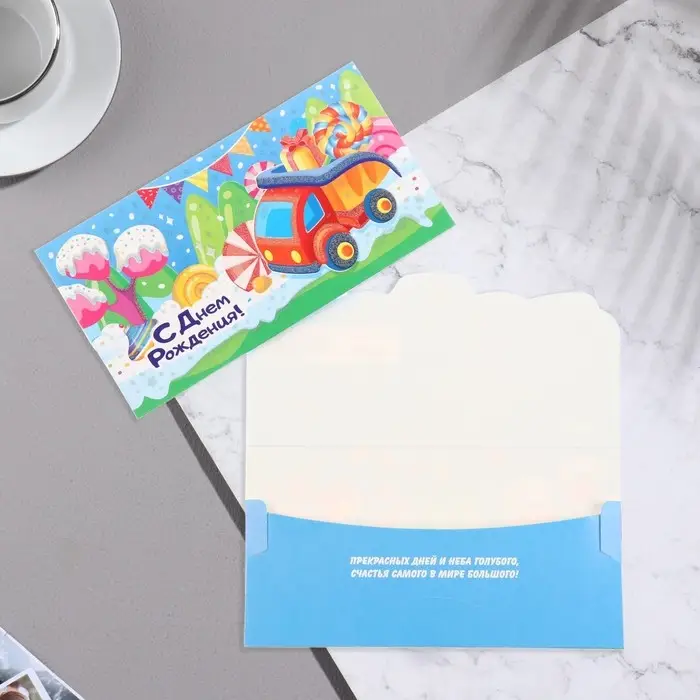 Конверт для денег "С Днем Рождения!" грузовик, сладости